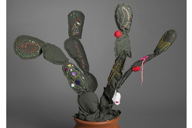 Margarita Cabrera cropped 651×435 02/06/2018 Return to: Margarita Cabrera: Space in BetweenFull resolution (651 × 435) Image navigation Previous Image Space in Between - Nopal (Lucia Fernandez) Border patrol uniform fabric, copper wire, thread, terra cotta pot 40 x 36 x 14 in. Collection of the artist