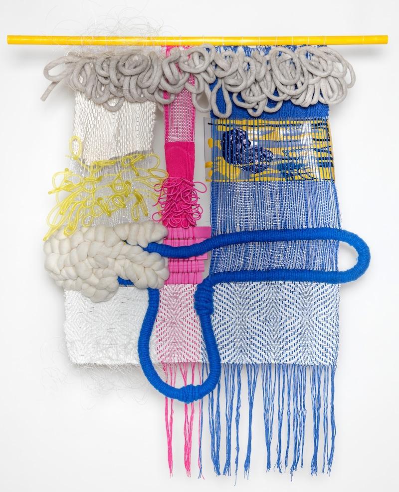 | New York-Asya Geisberg Gallery presents “Ariadne Unraveling”opens on May 23rd, an exhibition of eight artists who work with weaving, tapestry, yarn and thread: Samantha Bittman, Liz Collins, Hannah Epstein, Desire Moheb-Zandi, Sophia Narrett, Arna Óttarsdóttir, Katarina Riesing, and Rachel Mica Weiss. Their work both deconstructs the woven medium and pushes it towards a multi-media approach, be it painting, sculpture, drawing, or installation. Samantha Bittman uses weaving as both a medium and a subject, working within the limitations set by a 12-harness floor loom. Bittman is inspired by the history of weaving technology, and how, despite major leaps in innovation, including the full automation of looms, the basic over-under interlacements of the warp and weft has never changed. Liz Collins employs a range of materials and incorporates vivid palettes and dynamic patterning to create work that straddles the divides between the functional, the decorative, and the expressive. Her projects vary in scale, from the object-based to the immersive and architectural. Consistently intermingling fashion, furniture, and objects with woven thread or yarn, Collins has created a multi-disciplinary ecosystem where yarn reigns. Hannah Epstein blurs the lines between folk craft, popular culture and contemporary art. As a trained folklorist, Epstein advocates for a deeper understanding of storytelling and its crucial role in the construction of reality. Her work aims to turn passive voyeurs into active players through themes of “play”. Desire Moheb-Zandi forged her personal and cultural identity through hours spent watching her grandmother weave in her childhood home in Turkey. Since relocating to the U.S., Moheb-Zandi has expanded the language of her weavings by mining countless sculptural possibilities, and combining found materials such as plastic and rubber with traditional modes of textile fabrication. With a mixture of vulnerability and satire, Sophia Narrett sews together sexual narratives, combining images gleaned from the Internet and reality TV with her own memories and fantasies. The narratives explore the social implications of images, the collective unconscious, and the freedom and restraints of femininity. Moving away from the geometric patchwork of traditional patterns, Arna Óttarsdóttircreates loose compositions of intentional and haphazard edits. The imagery is derived from drawings, doodles, and small notes from her sketchbooks, where she does not select the final motif based on refined finish, but rather on the possibility of future exploration. The textiles are made without batting or backing, giving the viewer insight into moments of resistance to a predestined outcome on the loom. Working with dye, embroidery, and silk, Katarina Riesing fragments the human body in humorous and awkward ways. Close-ups of lingerie and sexualized body parts feel deeply personal, even as the figures may be unidentifiable. Her small paintings confront with individually painted hairs and moles, while the painstaking embroidery adds a subtle decoration. The site-specific sculptural installation by Rachel Mica Weiss addresses the window and architecture of the gallery through careful use of scale, and diaphanous light-scattering. The installation uses the basic process of warping–measuring and tensioning hundreds of warp threads–and the basic structure of a loom–vertical threads stretched across two wooden bars. Viewers are allowed to feel a visceral awareness of their own comparatively diminished scale as they confront the work. |