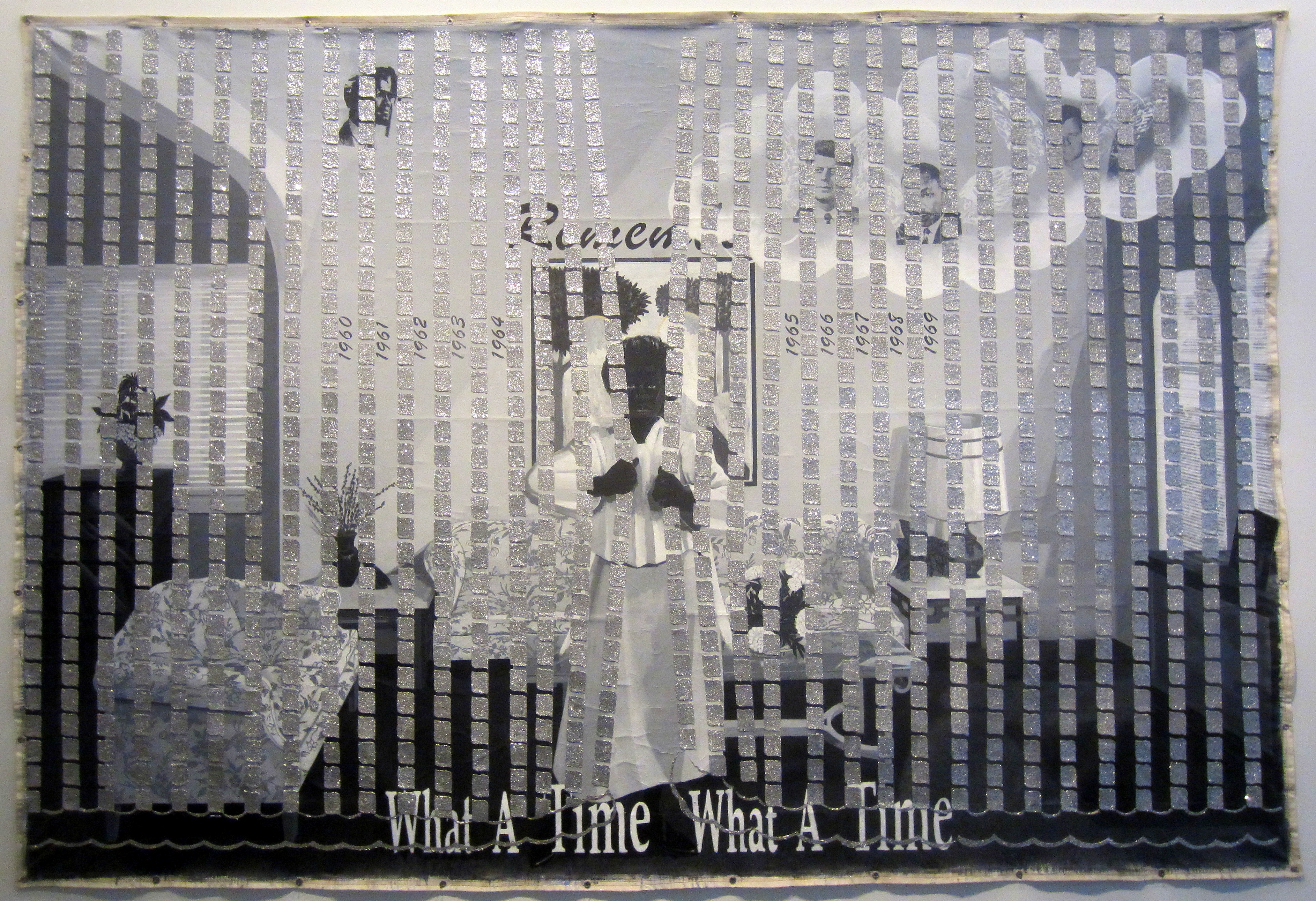 Another key theme visible throughout the exhibition is the use of abstraction as a strategy for confronting or mediating moments of historical violence or social upheaval, as in the contributions of artists such as Mark Bradford, Ellen Gallagher, Jennie C. Jones, and Julie Mehretu. In the wake of the Black Lives Matter movement, intensified discussions about the circulation of images of racial violence, death, and mourning in the digital age have also figured into the work of younger artists across a variety of forms. Many artists working today have built upon a tradition of confronting media representations of institutional violence and commensurate protest movements.